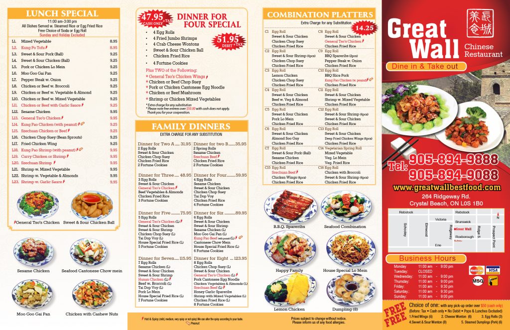 Great Wall is a beloved Chinese restaurant known for its flavorful dishes, extensive menu, and dedication to quality. Located in